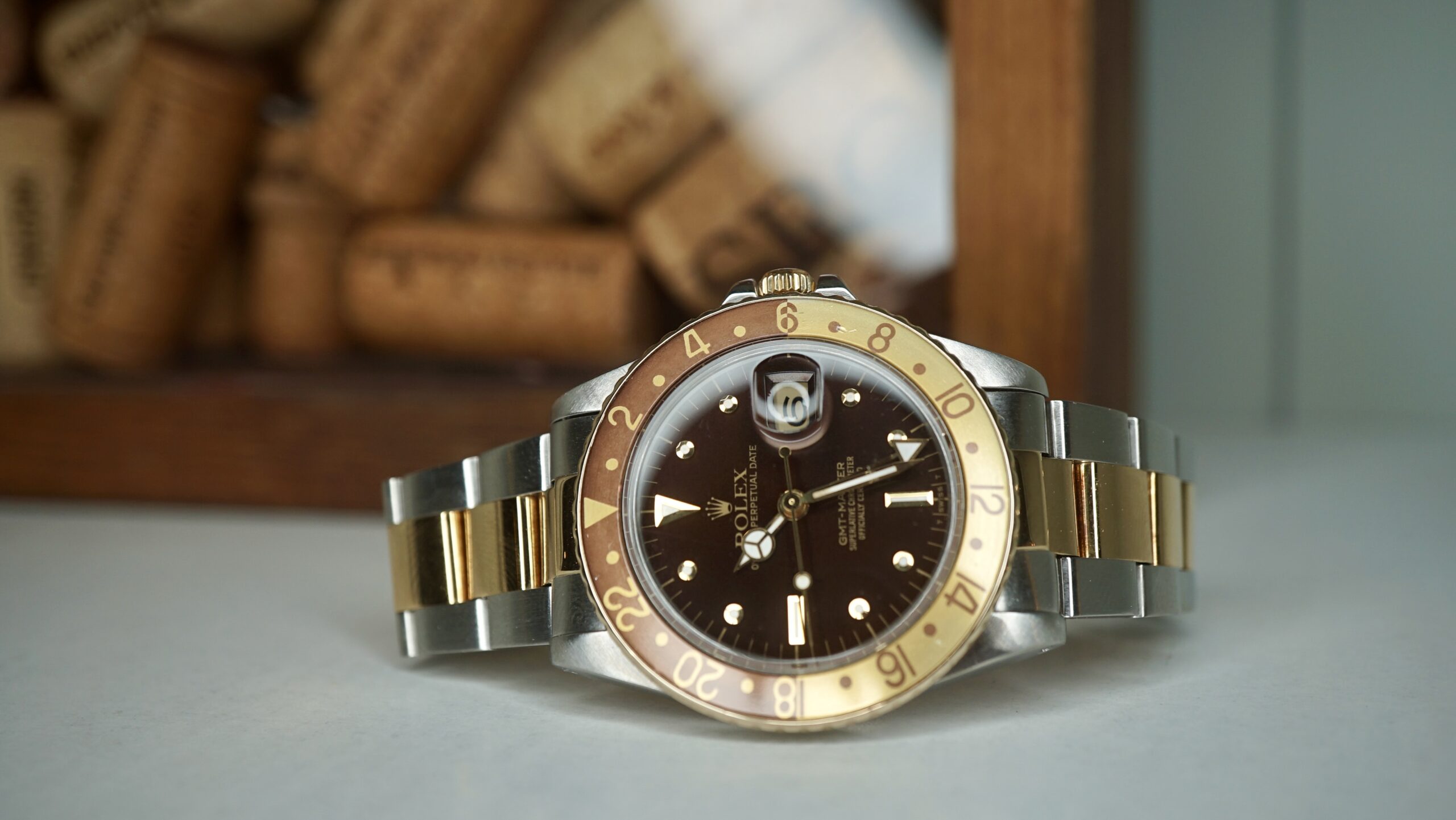 The Rolex GMT, known worldwide for its unique two-tone bezel known to most people as blue and red. However, in the 1970s, the “Root Beer” was introduced, the first gold/steel Rolex sports watch.
